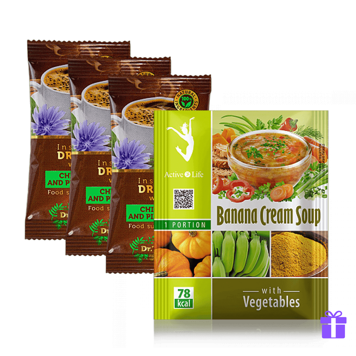 Kupte tři sáčky rozpustného čekankového nápoje s extrakty parchy saflorové a rezavce šikmého* a za 1 Kč získáte krémovou banánovou polévku se zeleninou.
