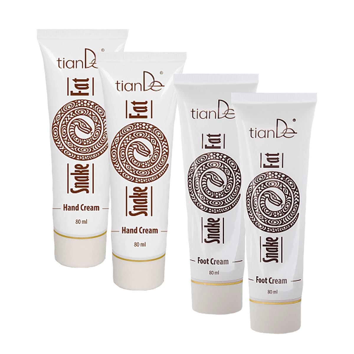 Sada Dvojitá ochrana obsahuje: krém na nohy s hadím tukem, 2 ks, krém na ruce s hadím tukem, 2 ks.