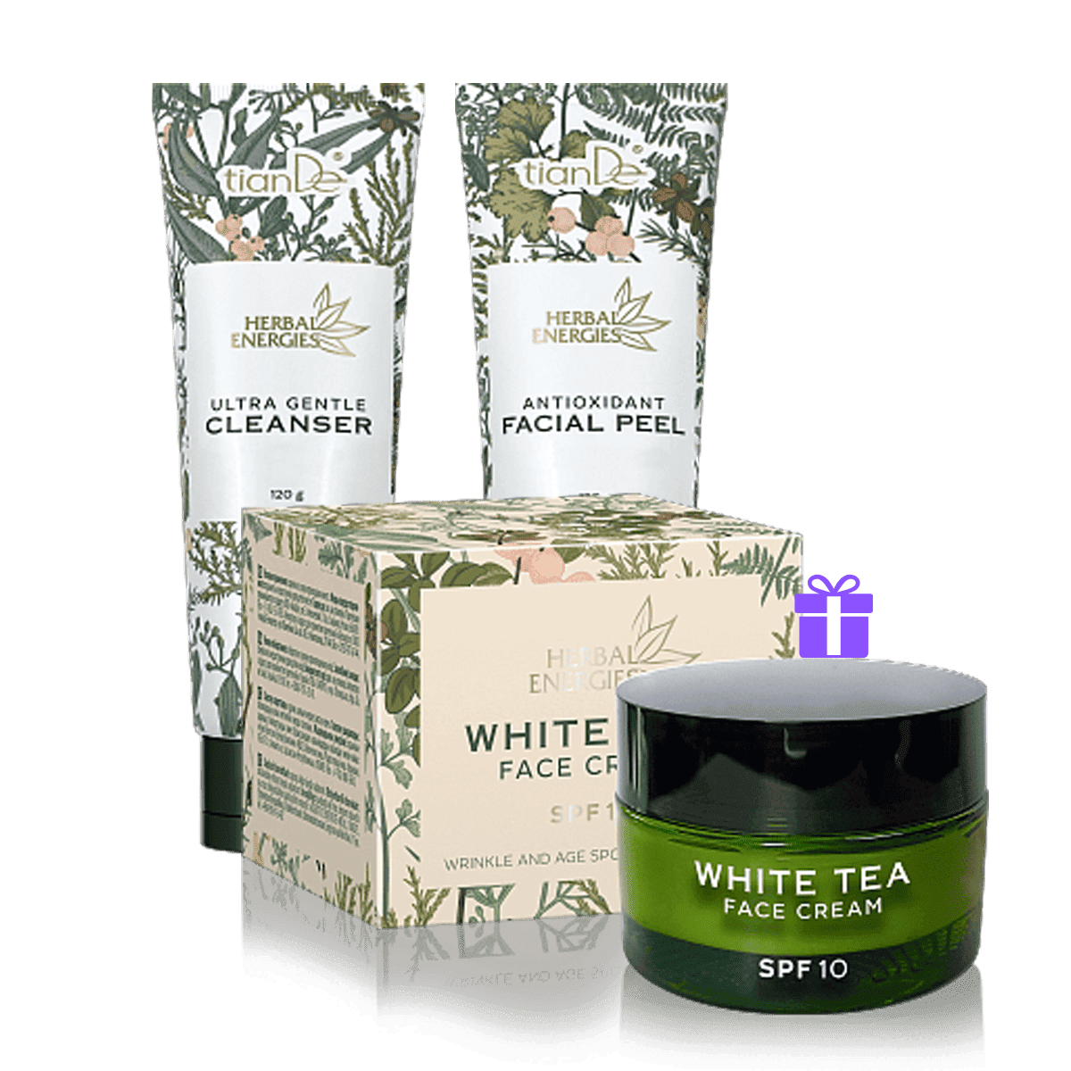 Kupte dva přípravky: ultra-jemný čistící gel + antioxidační pleťový peeling, a za 1 Kč získáte pleťový krém s bílým čajem.