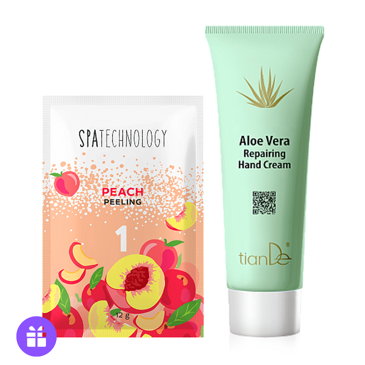 Výhodná nabídka, která poskytne dvojí péči o vaše ruce. Účinný krém na ruce s jemnou texturou zjemní pokožku, navrátí jí hebkost a pružnost. Jako bonus k krému získáte broskvový peeling pro hloubkové a šetrné čištění s příjemnou vůní.