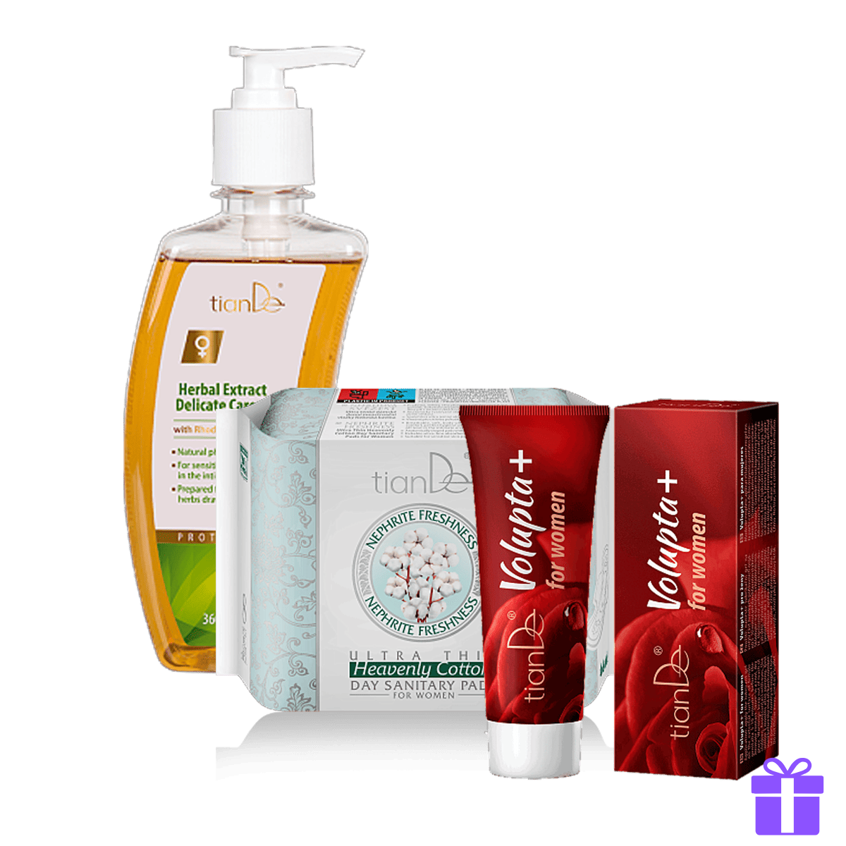 Bestsellery sortimentu TianDe – gely pro intimní péči a vložky, které se starají nejen o ženský komfort, ale i o celkovou pohodu. Ultra tenké vložky pro speciální dny z kvalitních materiálů, které pomáhají předcházet nepříjemnému efektu zapaření, a gel pro intimní péči s bylinnými extrakty, jenž podporuje přirozenou rovnováhu intimních partií – pořiďte si sadu pro kvalitní hygienu a jako bonus získejte gel pro posílení smyslových prožitků.